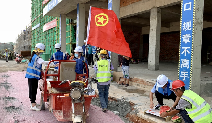 “一旦出现头晕、口渴、头痛、眼花、耳鸣、大汗、四肢无力等中暑症状要立即停止作业,到阴凉的地方通风降温……”在施工现场,项目团支部书记、安全总监王卫为现场作业人员进行高温作业宣讲,并悉心叮嘱现场人员一定要合理调配作业时间,注意防暑降温,确保各项工作有条不紊地进行。青年团员们有序发放防暑降温安全知识宣传单,并将熬制好的绿豆汤、西瓜和盐汽水等发放到每一位工友手上,就他们的辛苦付出表示敬意和感谢。