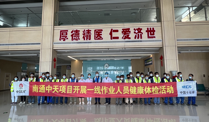 8月13日上午,中国十七冶南通中天炼钢项目联合南通市海门区第三人民医院医护人员开展一线作业人员健康体检活动,施工现场50余名作业人员参加此次健康检查。