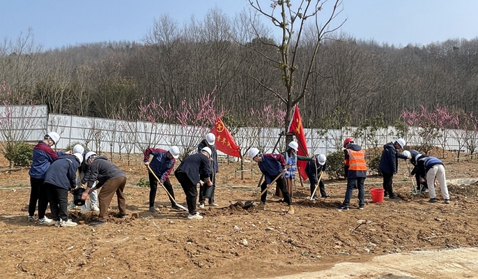 在安徽片区,房屋分公司、设计研究院、城建分公司团委及淮北理想城、芜湖长江小学、当涂小黄山安置房等项目前往属地植树点,挥动铁锹,挖掘坑穴,扶正树苗,填土踩实,搭设支撑,培土围堰,取水浇灌,一气呵成。精心栽种的小树苗迎着和煦的春风昂首挺立,展露出勃勃生机。结束后,大家主动捡拾周围的垃圾,忙碌的身影、欢乐的笑脸成为春天一道独特的风景。