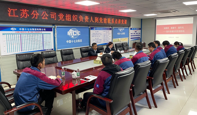 11月12日下午,十七冶江苏分公司党委书记韦俊春到南京大唐置安智能科技大厦项目党支部做调研、讲党课。