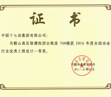 831日,从中国冶金建设协会获悉,由中国十七冶集团工程设计公司设计的马鞍山银塘组团公租房76#楼、兰州新区综合保税区工程EPC总承包三标段两个项目分别荣获全国冶金行业优秀工程设计一等奖和三等奖。